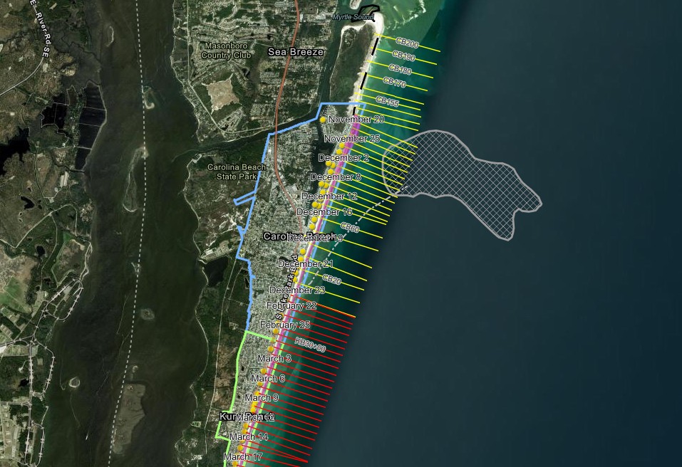 Sand placement in the Carolina Beach portion of the project is expected to begin around November 15, 2025, and take approximately four to five weeks to complete.