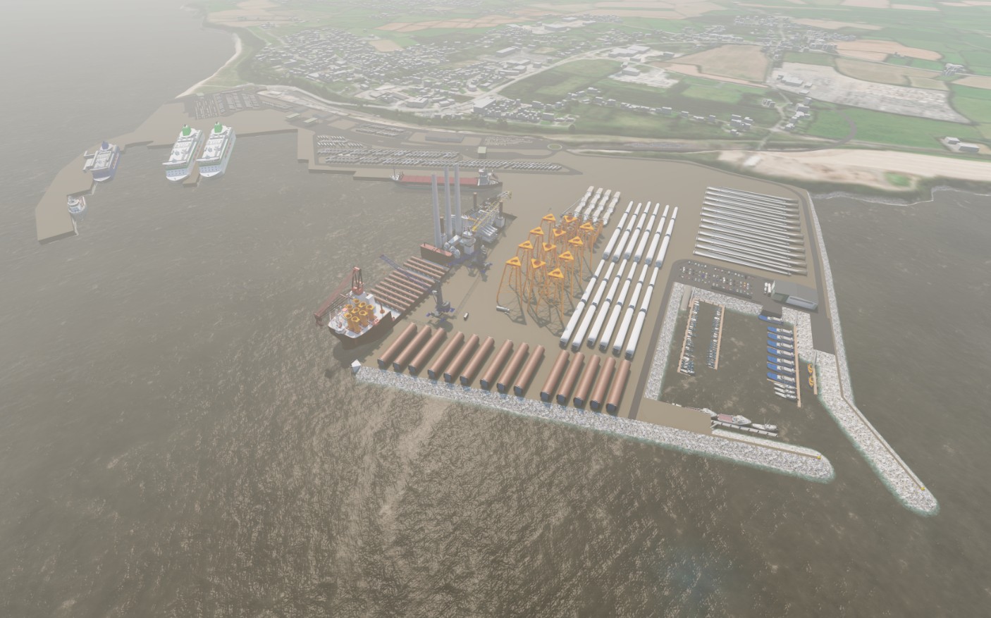 • 32 hectares of land reclamation, including the creation of 19.7 hectares of new port lands capable of handling the largest wind turbine components.