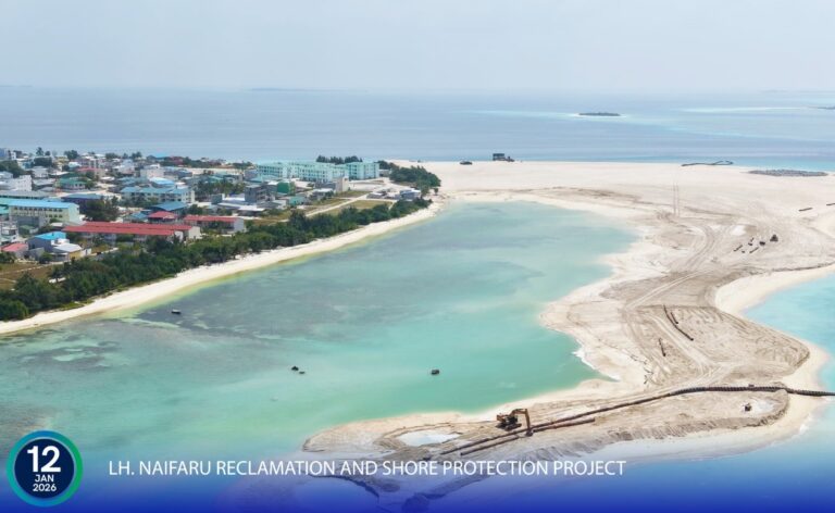 Maldives Transport and Contracting Company (MTCC) has just released the latest update on the Lh. Naifaru land reclamation and shore protection project, saying that the works are in full swing.