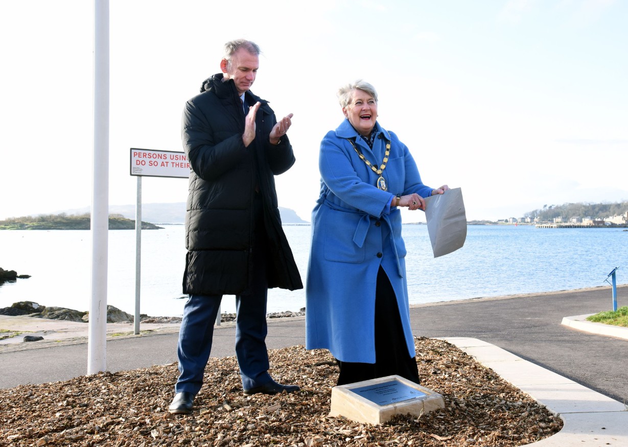 North Ayrshire Provost, Anthea Dickson, has unveiled a plaque for a Cumbrae £48million flood protection scheme.