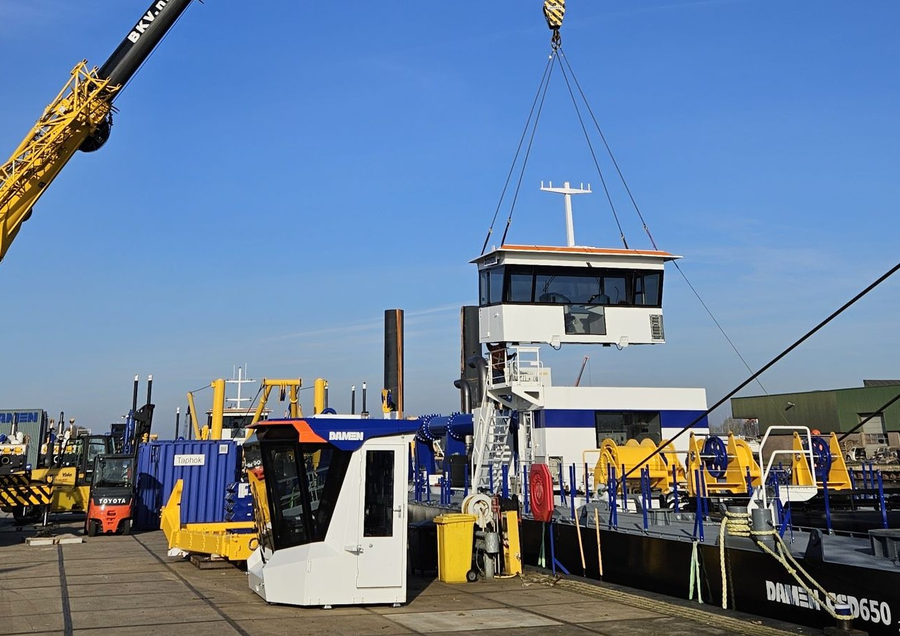 According to Damen, a single operator can control the entire dredger from the operating cabin and the spacious, raised operating cabin allows for a perfect view of the jobsite.