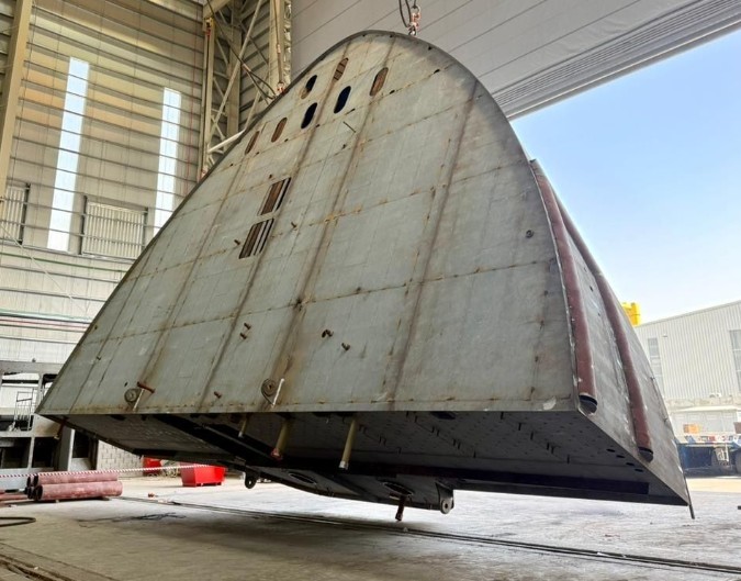 Major steel structures are now clearly taking shape, with key sections of the hull and internal framework progressing smoothly in the Albwardy Damen yard.