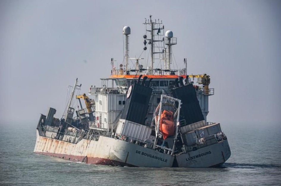 The De Bougainville, designed for high-precision dredging and reclamation works, is a specialized TSHD with a capacity of 3.700 m3 and was built at the Tianjin Xinhe Shipyard in the Peoples Republic of China.