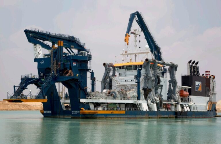 The trailing suction hopper dredger (TSHD) Rotterdam and the cutter suction dredger (CSD) Artemis, operated by Van Oord, are currently anchored in Muscat, amid the U.S.-Israeli conflict with Iran.