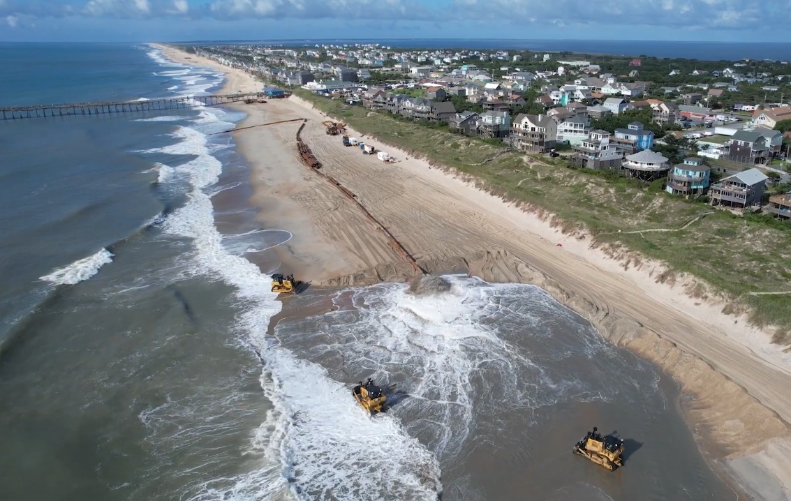 The project, which is part of Dare County’s ongoing efforts to protect the shoreline, designed to widen existing beaches and create a larger protective barrier between the Atlantic Ocean and critical infrastructure on Hatteras Island – specifically N.C. Highway 12.