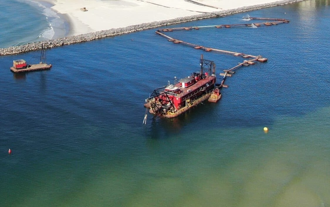 According to USACE, the dredger will be pumping material into approved open-water placement sites located adjacent to the channel.