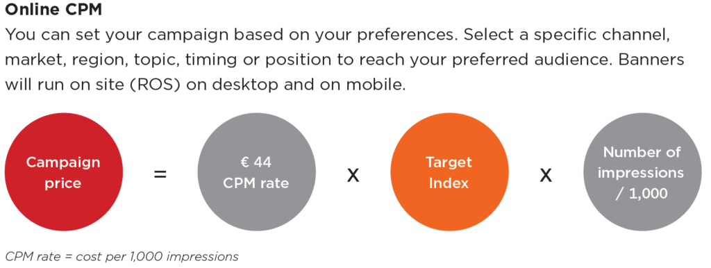 Campaign price = € 44 x 60,000 impressions / 1,000 = € 2,640
