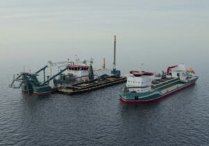 Repairing west pier along Little Sodus Bay